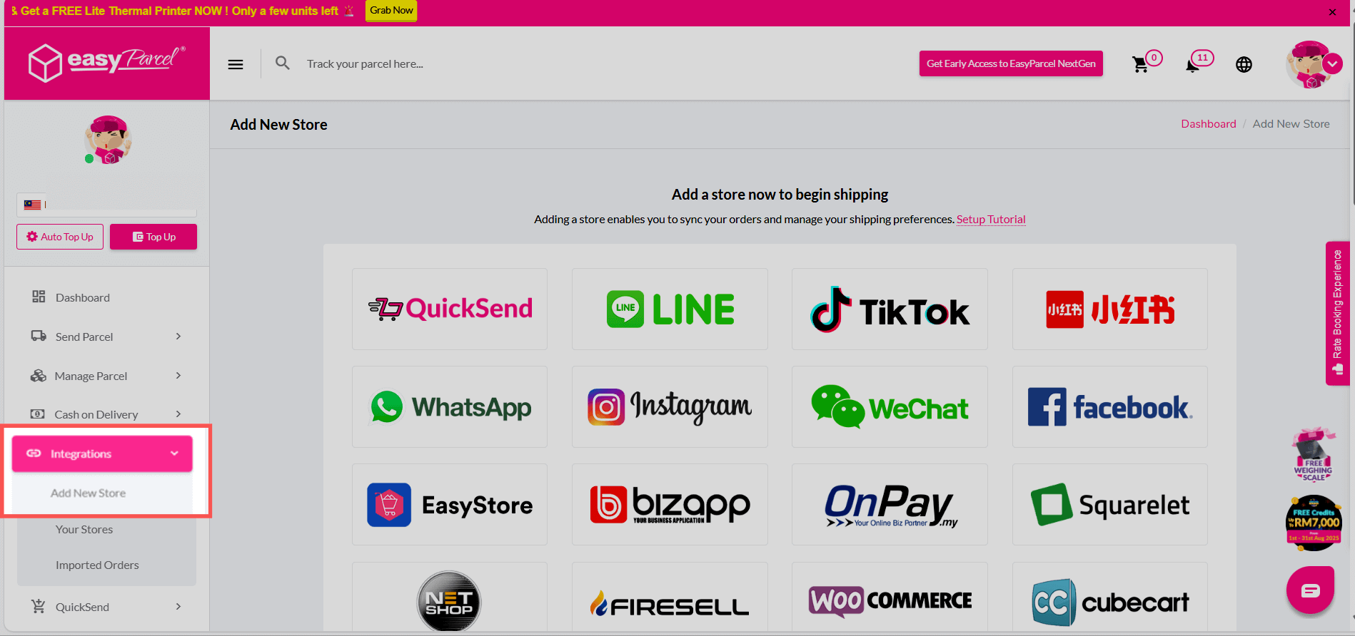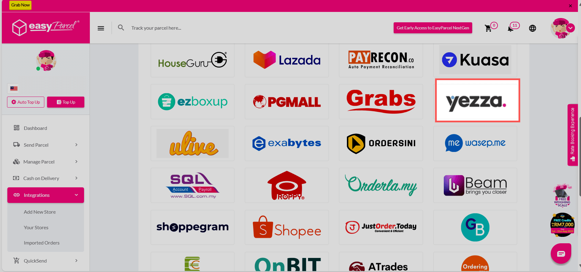 Step 5: Kindly go to Yezza platform – dashboard – Setting – EasyParcel .