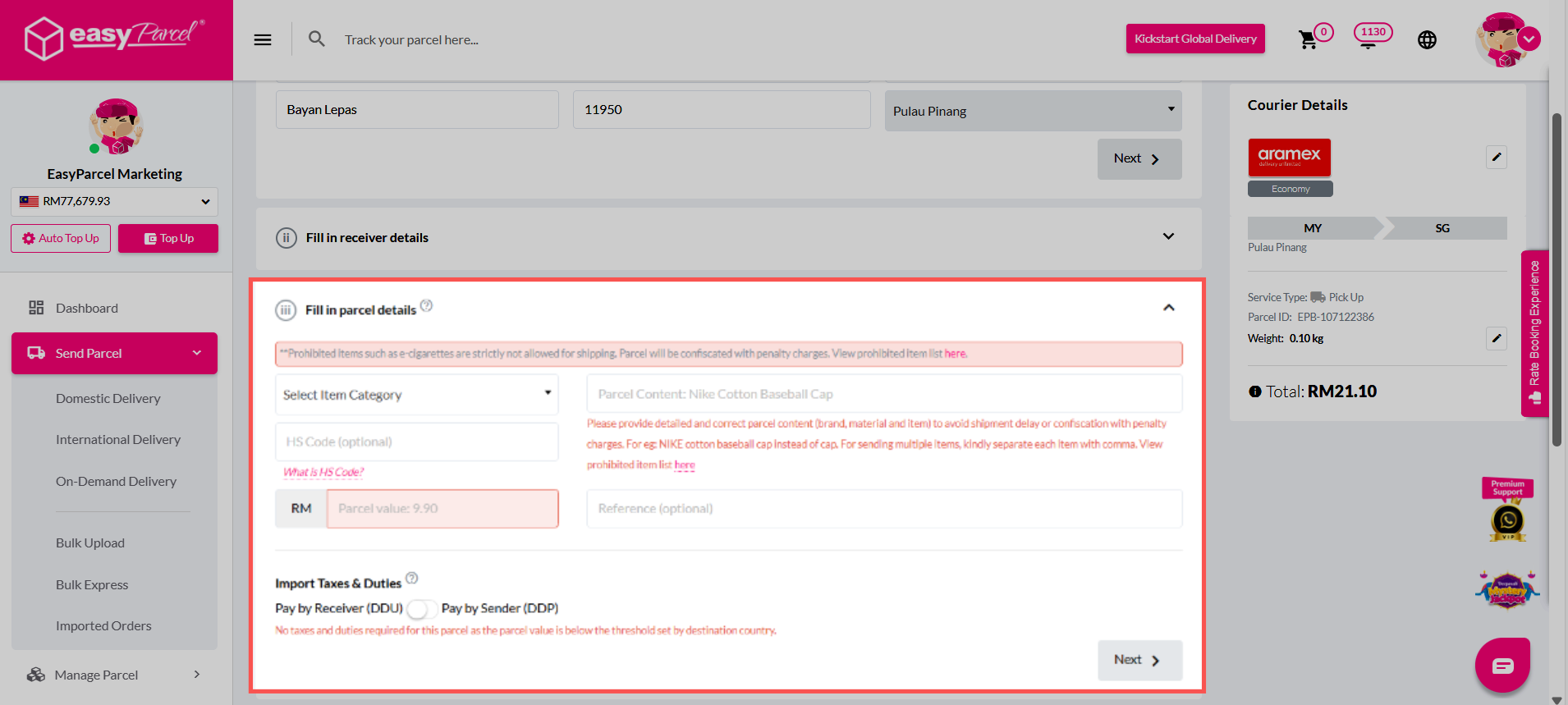 A: No need to manually search for your HS Code! When you select the item category for your parcel during the booking process, EasyParcel automatically assigns the relevant HS Code based on your selection. - Q: What if I enter the wrong item category?